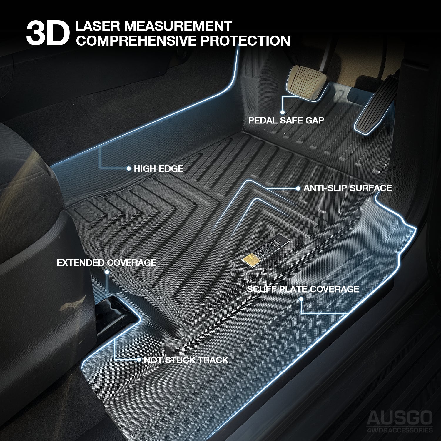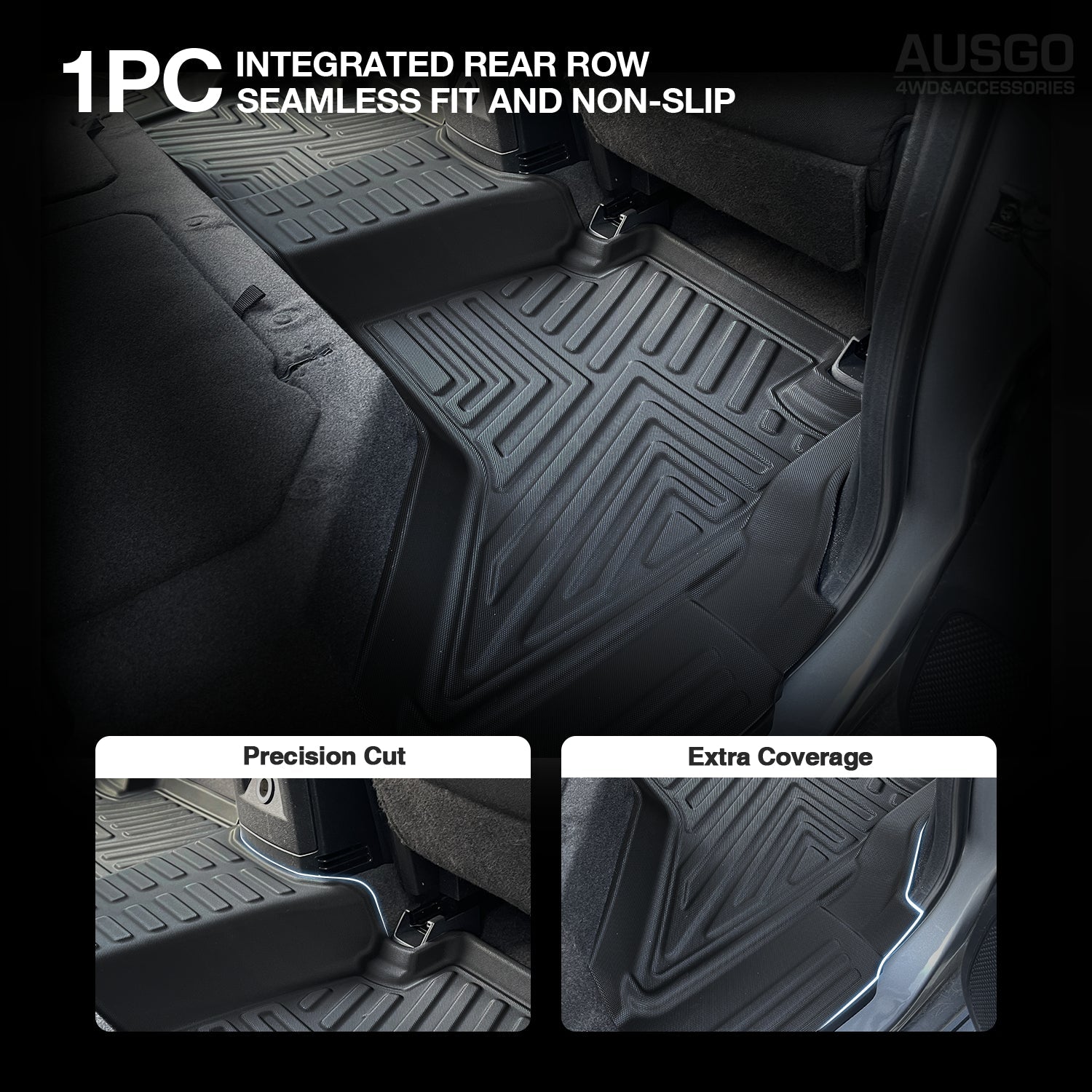 Secure & Stable: Anti-slip texture, high-grip edges, and secure retention fittings keep the mats firmly in place.